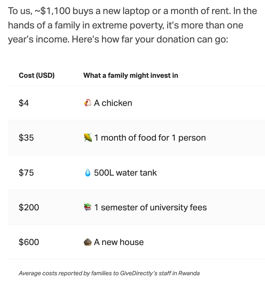 Lots of people are asking for your money today. If you want your donation to make a real difference in the life of someone who needs it the most, I cannot think of a better place to donate than GiveDirectly.