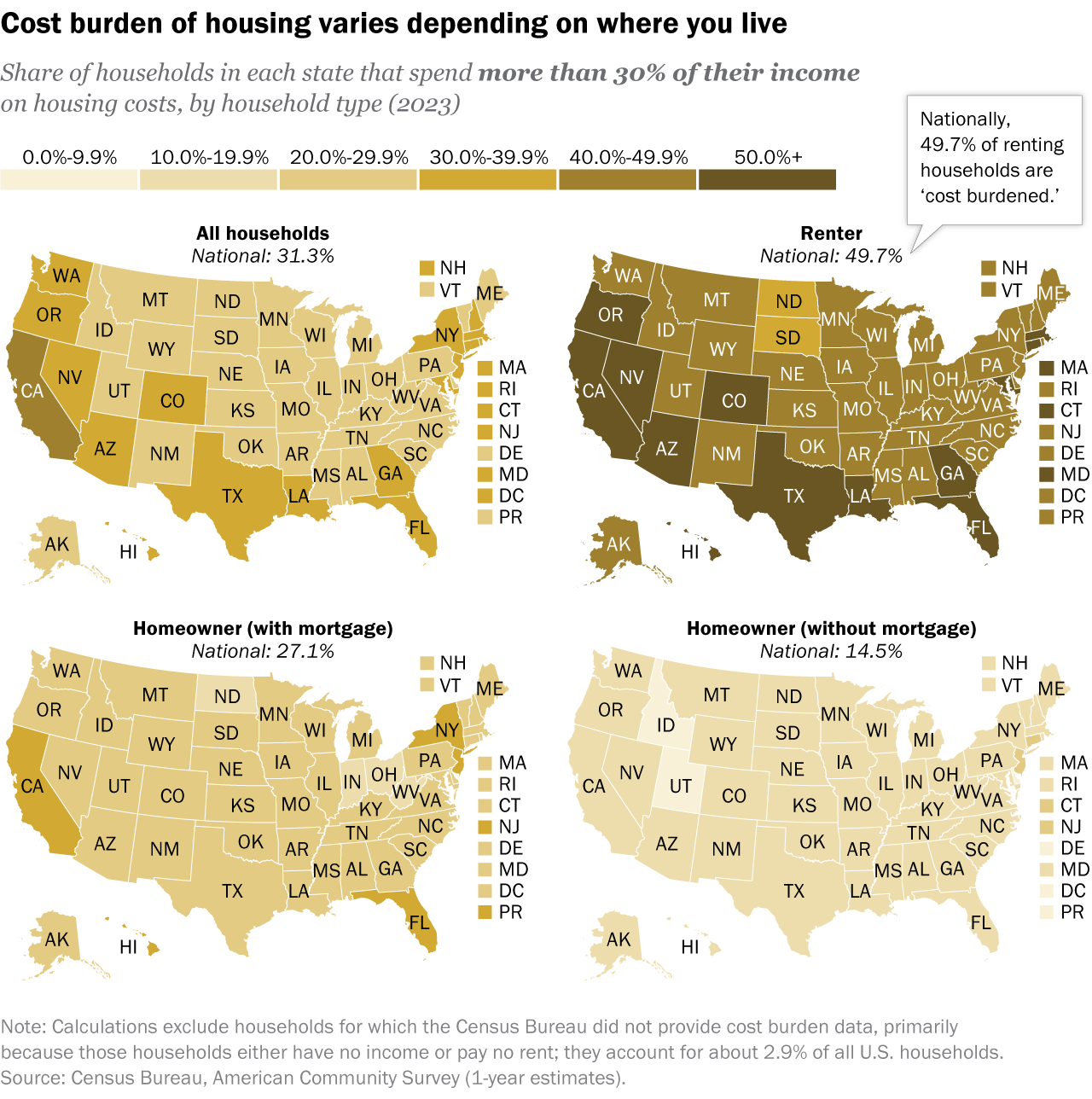 Throughout Green’s post, he pointed to the debilitating cost of shelter, and he’s right. More than half of renting households are spending over 30% of their household income on rent, and more than a quarter are spending over half of their household income on rent.