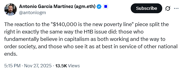 As a mark of my newfound ability to disconnect from social media over the holidays, I didn’t come across the $140,000-is-the-new-poverty-line discourse until Sunday. So, for the similarly unplugged, here is a recap: