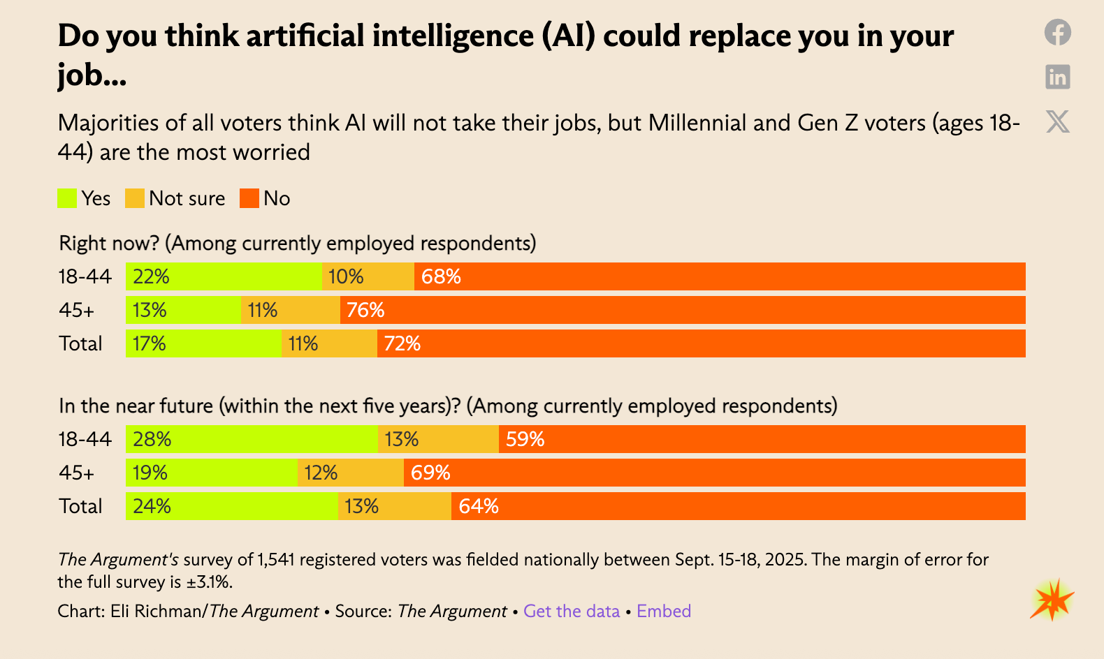 In topic after topic from our newest survey at The Argument, it is clear that a primary line of division around AI is age, rather than ideology, race, or partisanship — and specifically, whether someone grew up in the internet era or not.