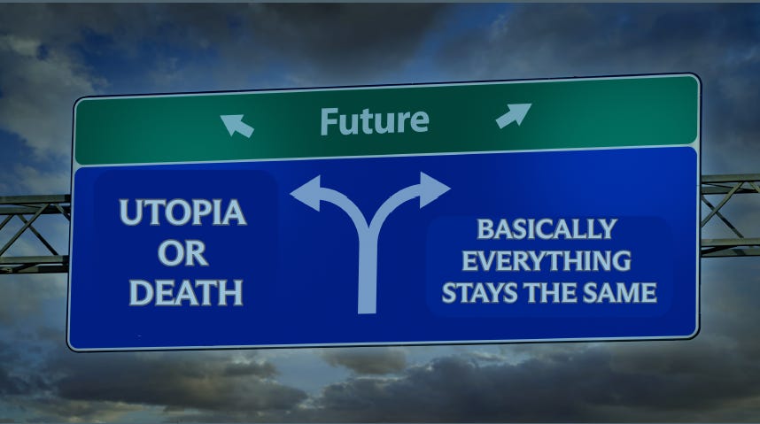 This kind of forecast is, of course, almost comically unhelpful (which the author clearly knows). But it’s also more honest than many other analyses of AI, which tend to fall into the trap of “I hate AI, therefore it is not going to be economically impactful” (I wish that were how hating things worked) or “I like technology and progress, therefore, like the internet, it is going to make us richer in a nice, smooth, not-very-disruptive way.”
