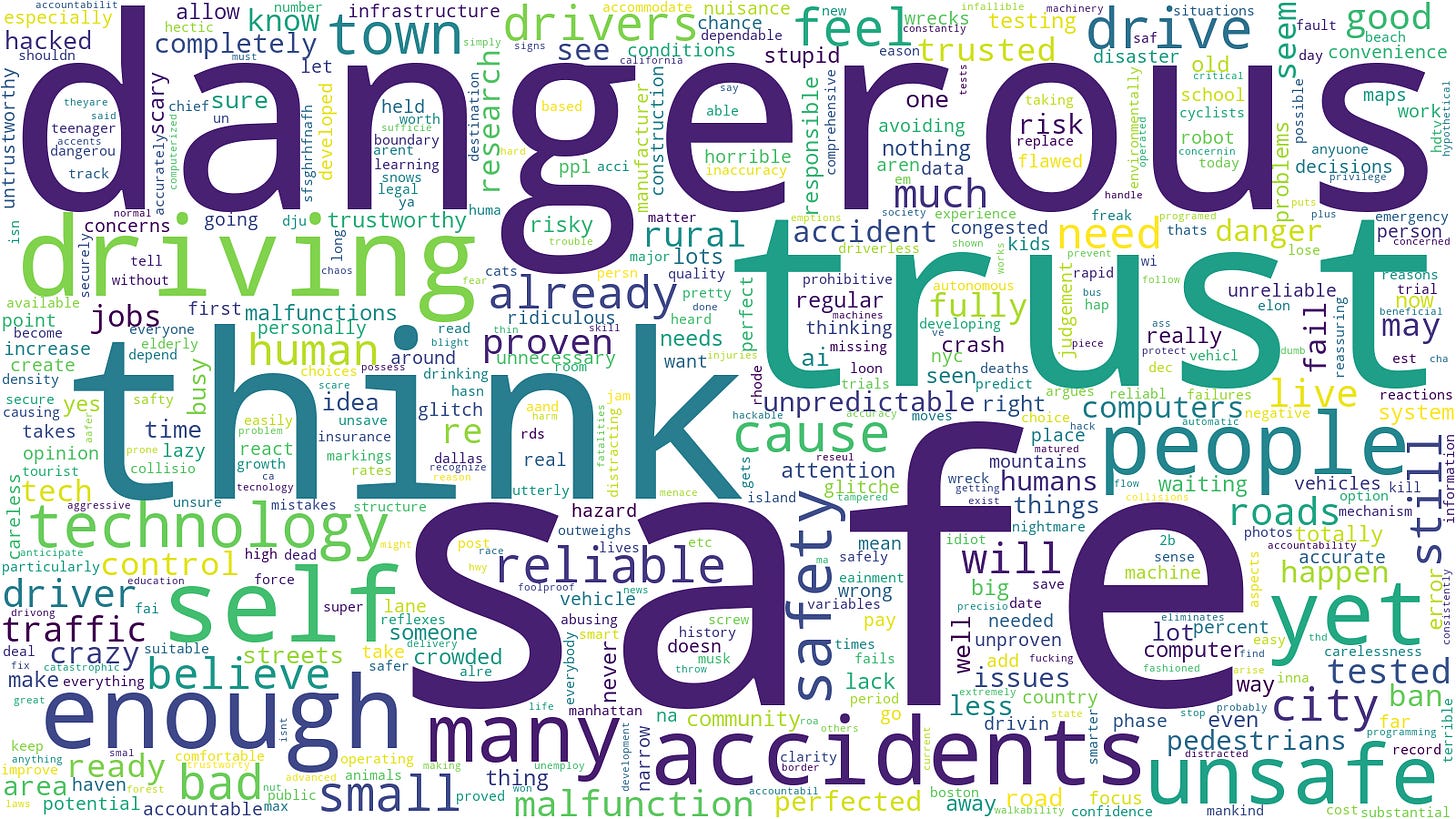 When we asked voters why they want to ban self-driving cars, they gave us a range of reasons, which generally boiled down to safety and trust.