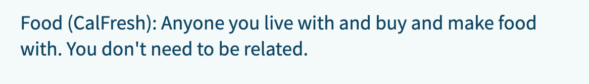 The intent is probably to block someone who is, say, living with a higher-income boyfriend or girlfriend who pays most of the bills. But the rules don’t consider whether the higher-income roommate is actually subsidizing the lower-income roommate in any way. Buy bulk rice and beans together and split the bill 50-50? You’re a household unit.